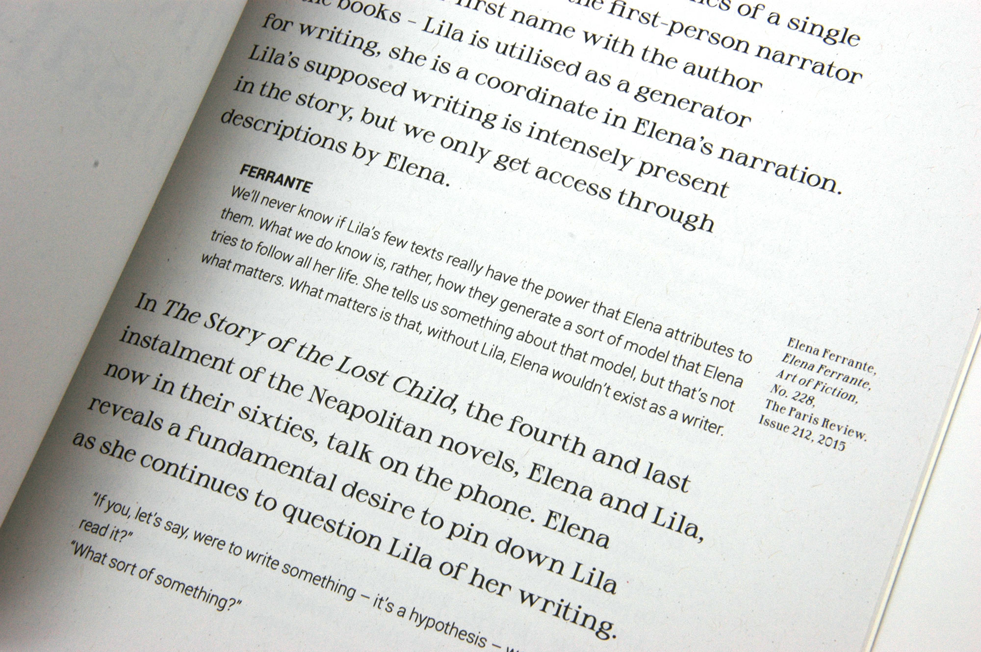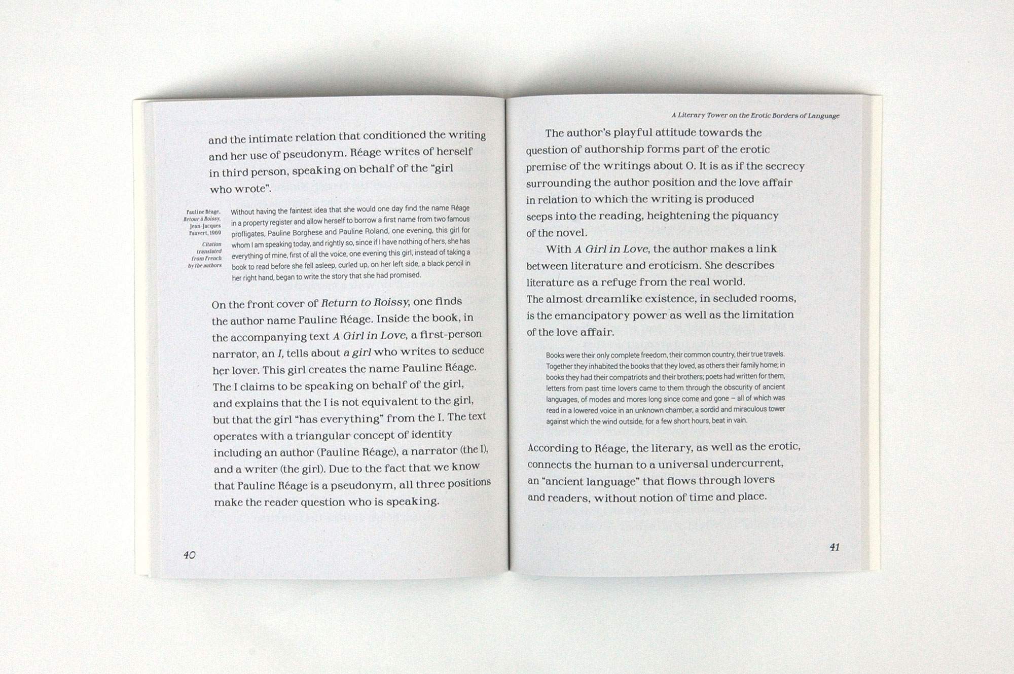 À travers les écrits d’Elena Ferrante, Pauline Reáge, Karl Ove Knausgård, Colette et Lee Lozano, les artistes Signe Frederiksen et Anne-Mette Schultz s’interrogent sur la figure de l’artiste et comment celle-ci conditionne la manière dont nous produisons de l’art. Le texte alterne ainsi entre citations et points de vue des deux autrices.