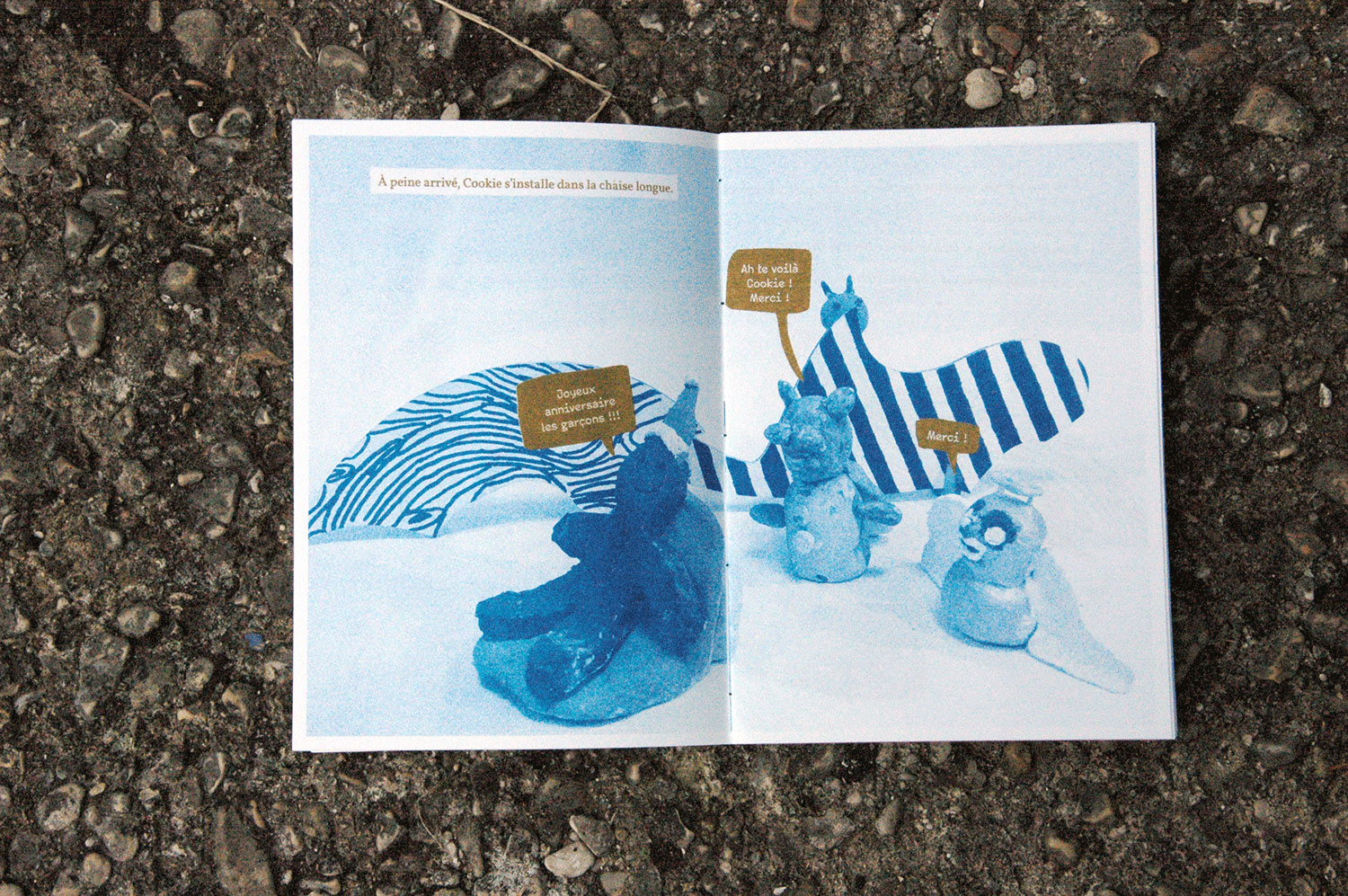 Dans le cadre d’un Projet Artistique Globalisé, les élèves de quatre écoles primaires ont construit collectivement des récits par le biais du jeu. Création de personnages en argile et de décors en bois, mise en scène et prises de vues photographiques, choix d’images, narration, écriture du texte et des dialogues, mise en page : toutes ces étapes ont été réalisées par les enfants, pour créer un livre compilant l’ensemble des récits imaginés.